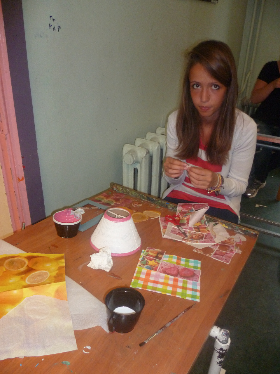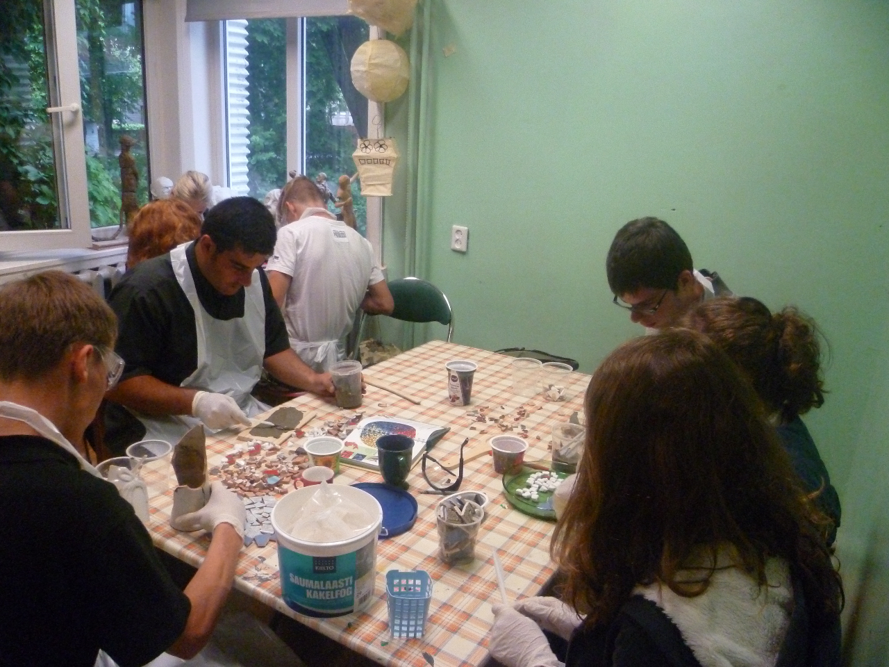 Au-delà des temps d’échanges et d’informations, nous avons completé nos débats et nos propositions à travers des exemples et des pratiques. Nous avons visité le centre de traitement des déchets à Pärnu-Jaagupi. Nous avons rencontré une spécialiste de l’environnement exerçant au centre de traitement des déchets à Pärnu-Jaagupi. Cette experte nous a parlé des influences des déchets sur l’environnement, des techniques utilisées pour réduire nos déchets et des comportements à adopter. Nous avons aussi visité un magasin qui vend et fabriques des produits issus des techniques de recyclage – Ringluspood à Pärnu. Ensuite, nous avons participé durant 3 journées à des ateliers artistiques sur le recyclage. Celles-ci ont incité les jeunes à valoriser et à protéger l’environnement qui les entoure. Ces animations artistiques se sont découpées en six thèmes : le découpage, le recyclage des vêtements et des chaussures, le vitrage, la création des bijoux, l’impression sur le tissu et la création des bibelots.